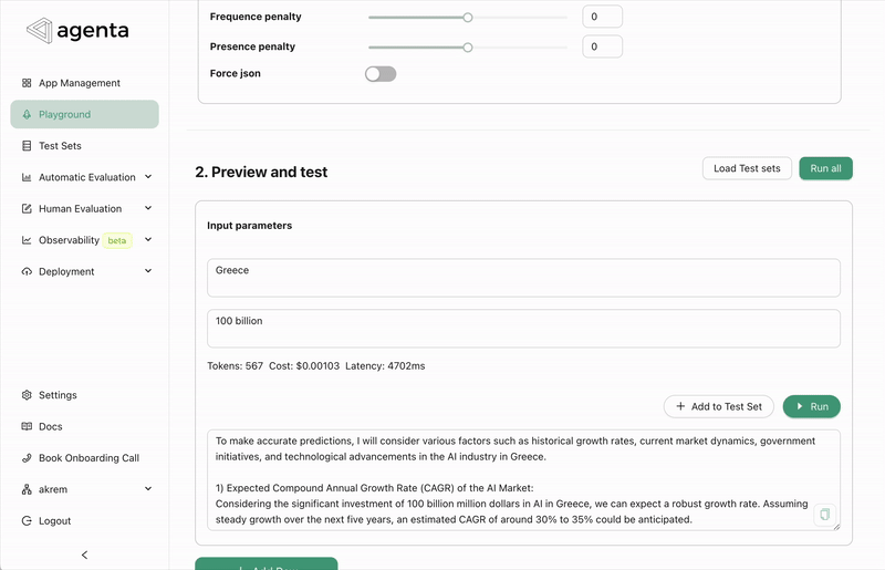 - We've improved the workflow for adding outputs to a dataset in the playground. In the past, you had to select the name of the test set each time. Now, the last used test set is selected by default..